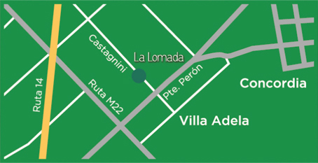 La Lomada se encuentra en la localidad de Villa Adela sobre la Calle Antonio Castagnini, a 600 metros de Av. Pte. J.D. Perón, camino de ingreso sur a la ciudad de Concordia y a solo 7 minutos del centro
